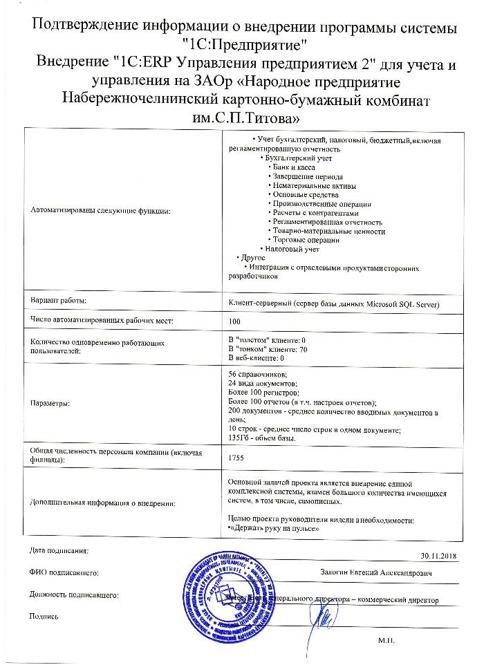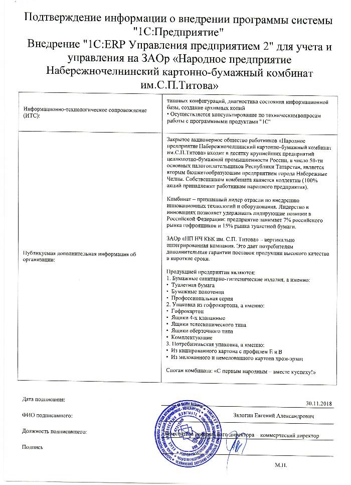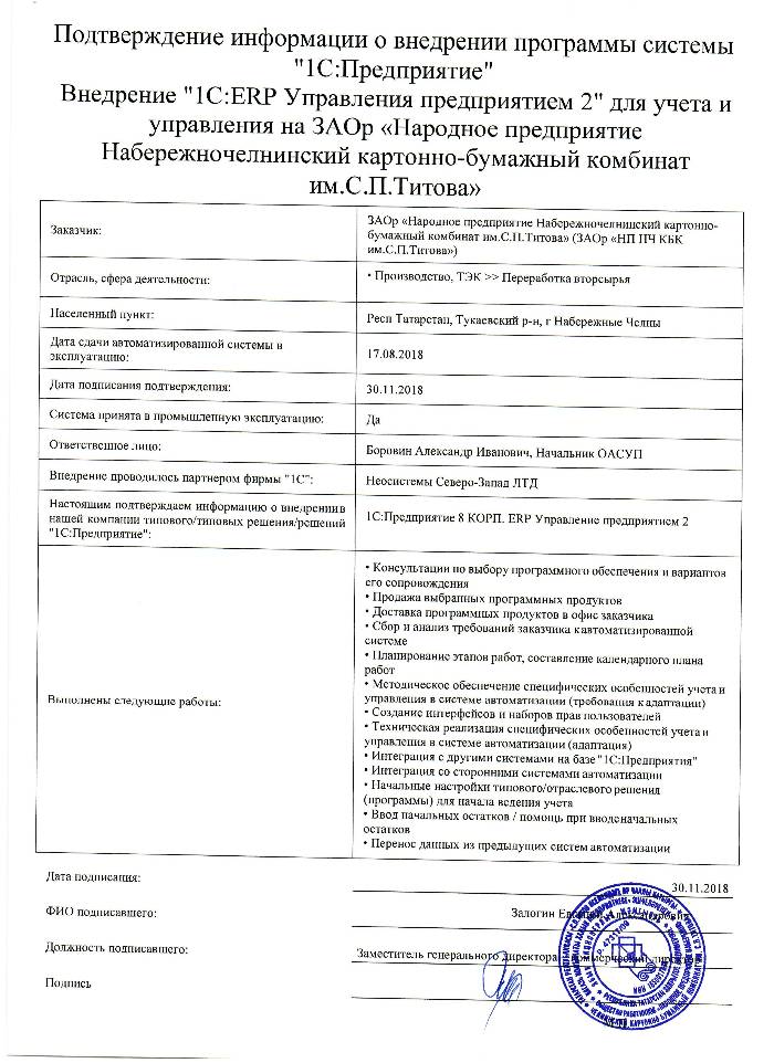 ЗАОp «Народное предприятие Набережночелнинский картонно-бумажный комбинат им.С.П.Титова» (ЗАОр «НП НЧ КБК им.С.П.Титова») компании Неосистемы Северо-Запад