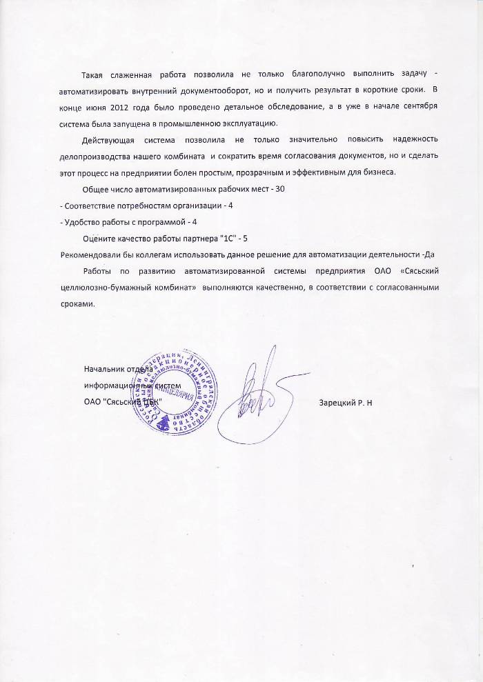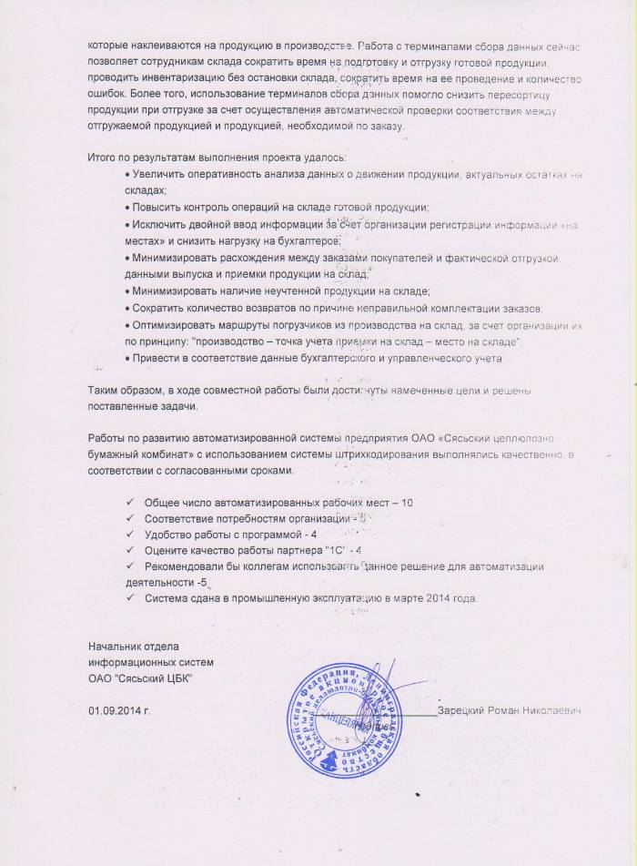 ОАО «Сясьский целлюлозно-бумажный комбинат» - внедрение «1С:Лесозавод»