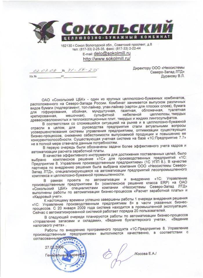 ОАО «Сокольский ЦБК» компании Неосистемы Северо-Запад