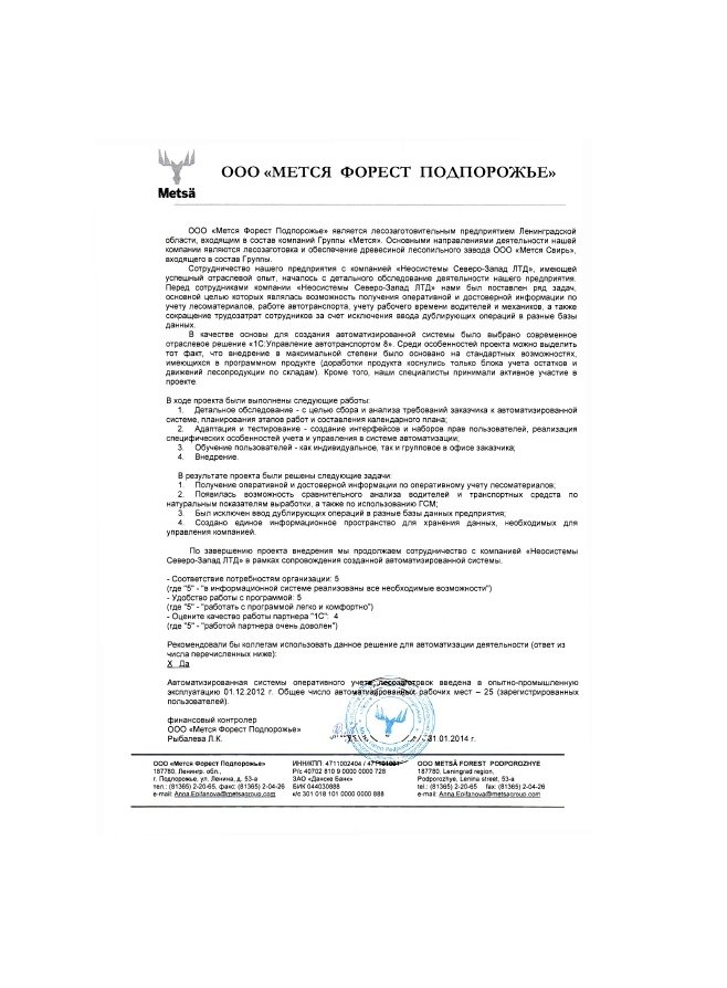 ООО «Мется Форест Подпорожье» компании Неосистемы Северо-Запад